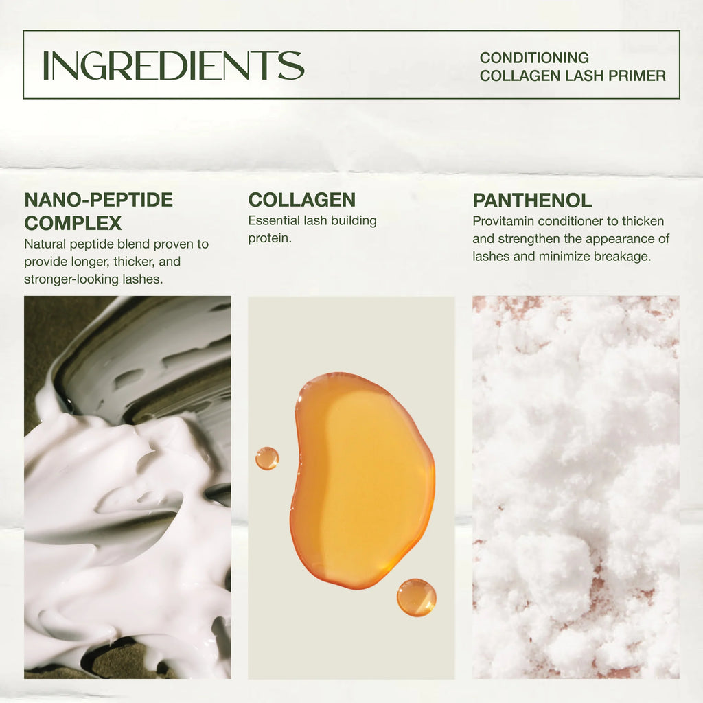 Instantly plump, lengthen and condition lashes with lash loving makeup. Begin by boosting the length, thickness, and lift of your lashes with the Collagen Lash Primer, delivering long-lasting volume and prep for mascara wear. Infused with a nourishing blend of collagen and a nano-peptide complex, it strengthens and revitalizes lashes while providing the perfect base. Follow with the Conditioning Drama Mascara for intense, pitch-black pigment and all-day wear. Powered by nourishing peptides, this mascara enhances lash length and thickness, leaving lashes healthy, defined, and dramatically lifted.